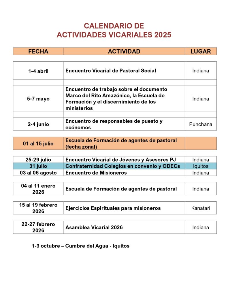 Calendario vicarial 2025